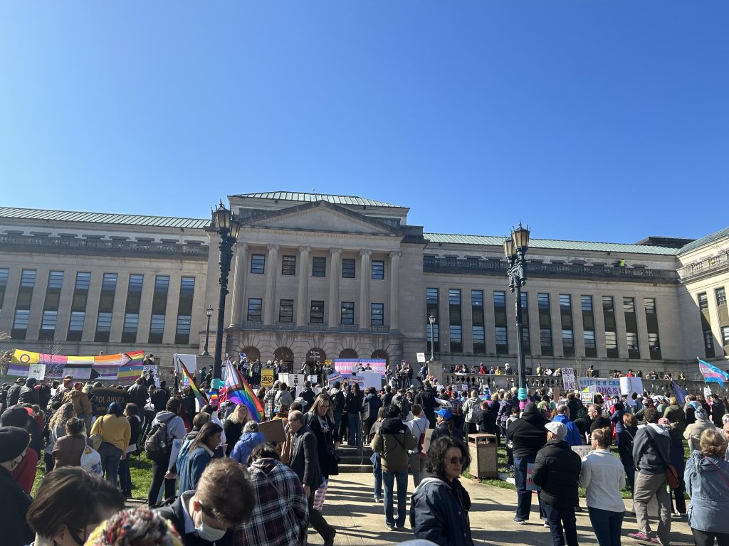 Teens and supporters from across Kentucky today came together to show that, despite the legislators overturning Governor Beshear’s veto of SB 150, queerness has a place here in Kentucky.